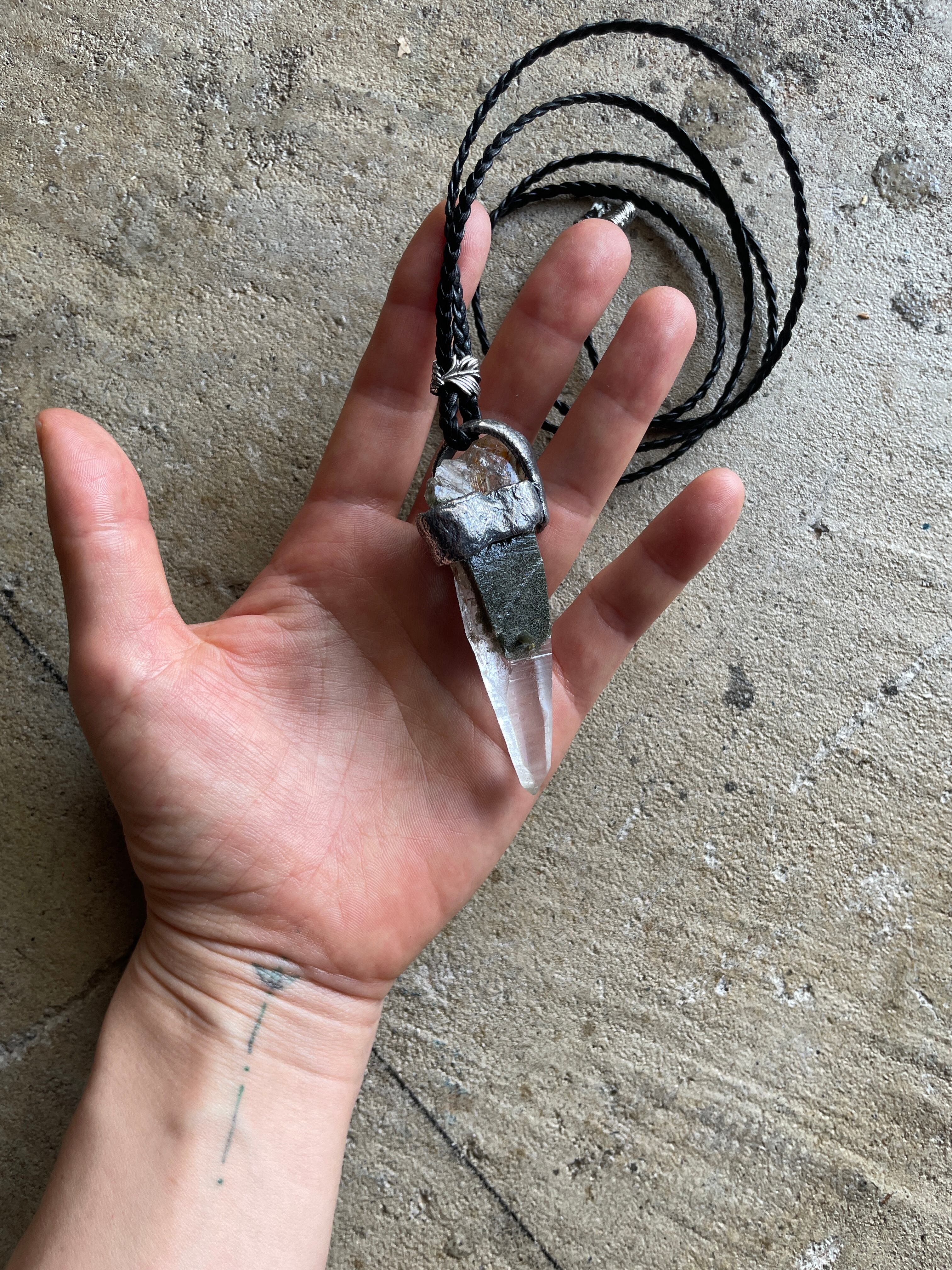 神聖なヒマラヤ山脈、ガネーシュヒマールで手掘り採掘された特別な水晶を使用した、ペンダントのご紹介です。